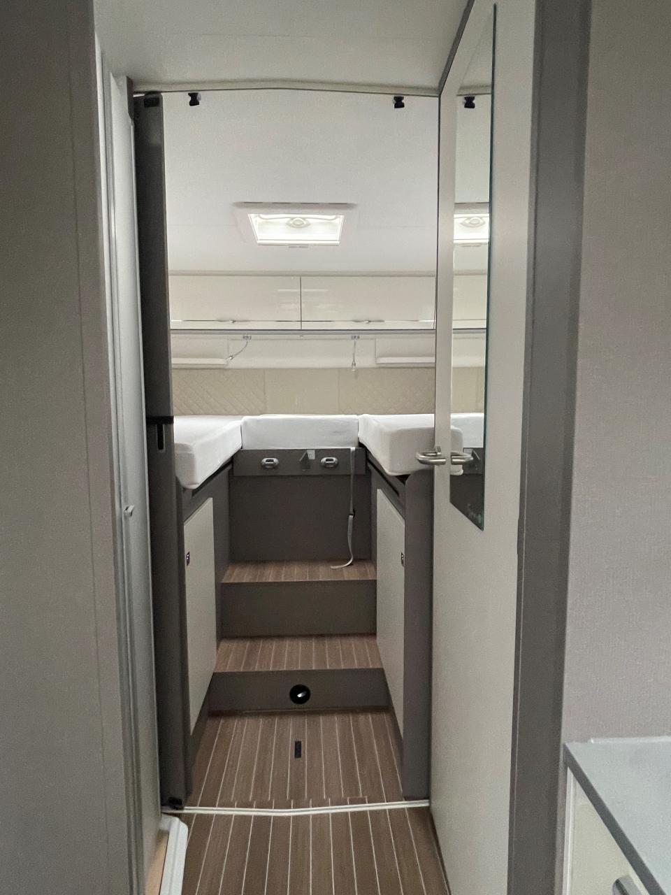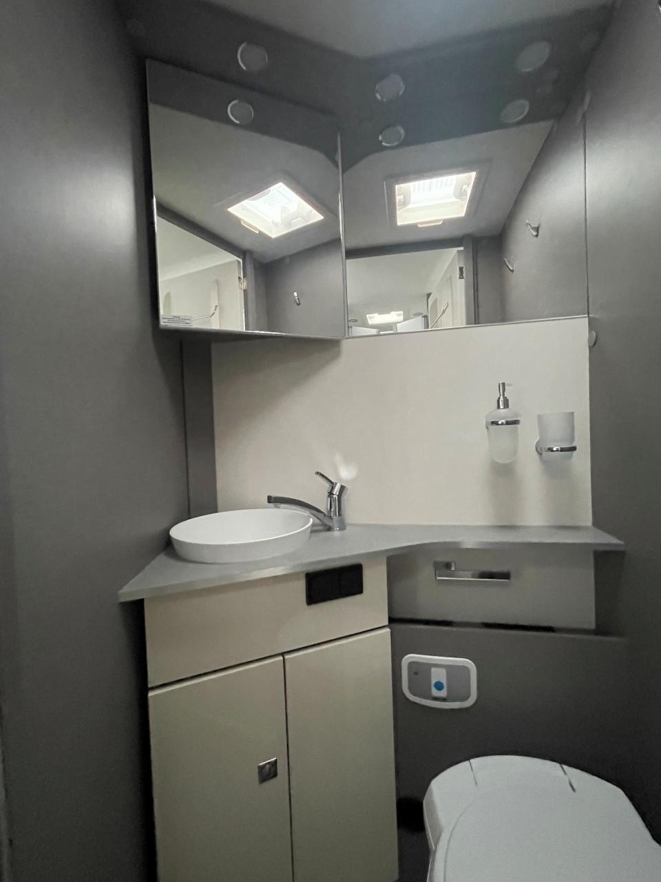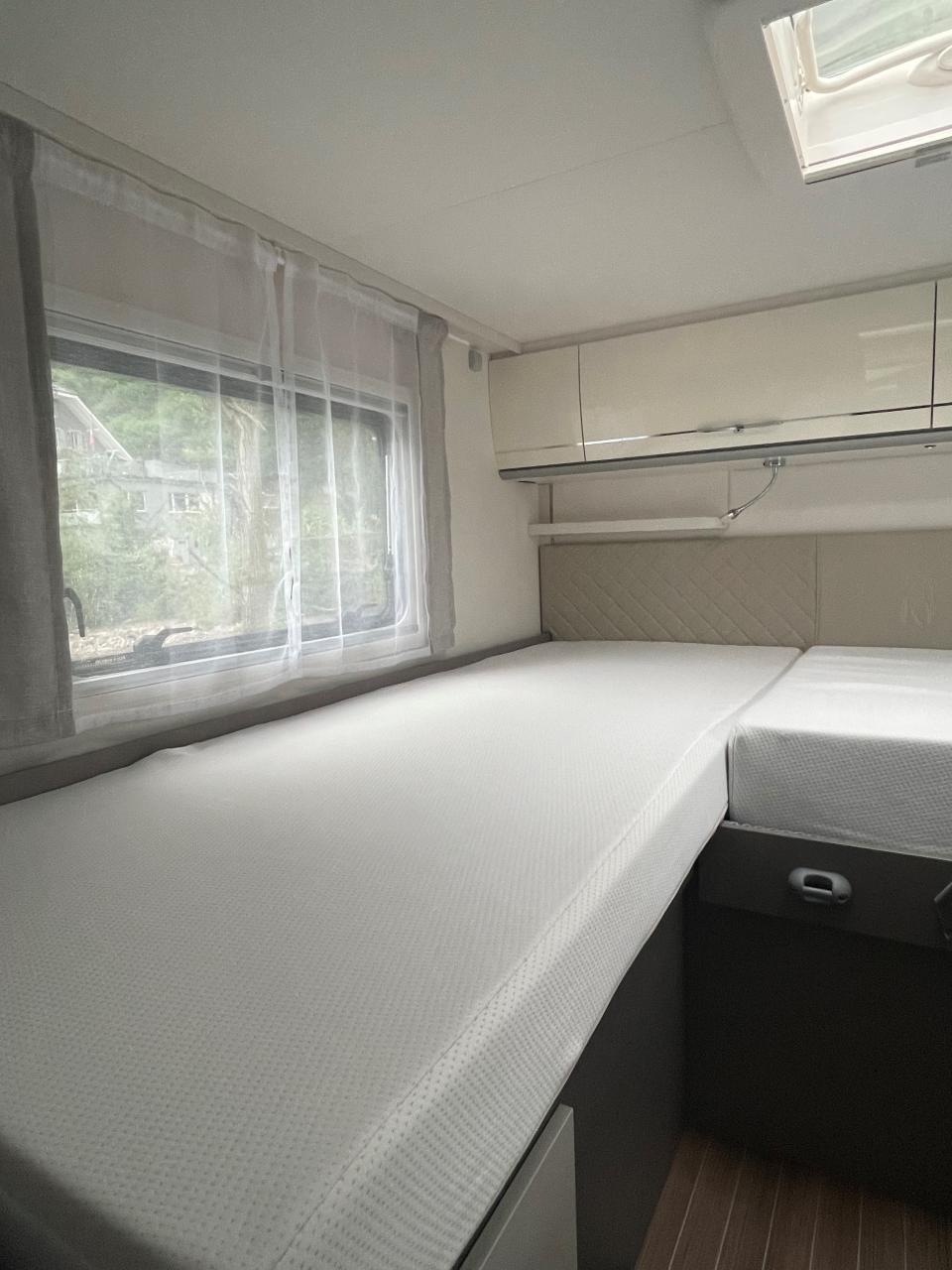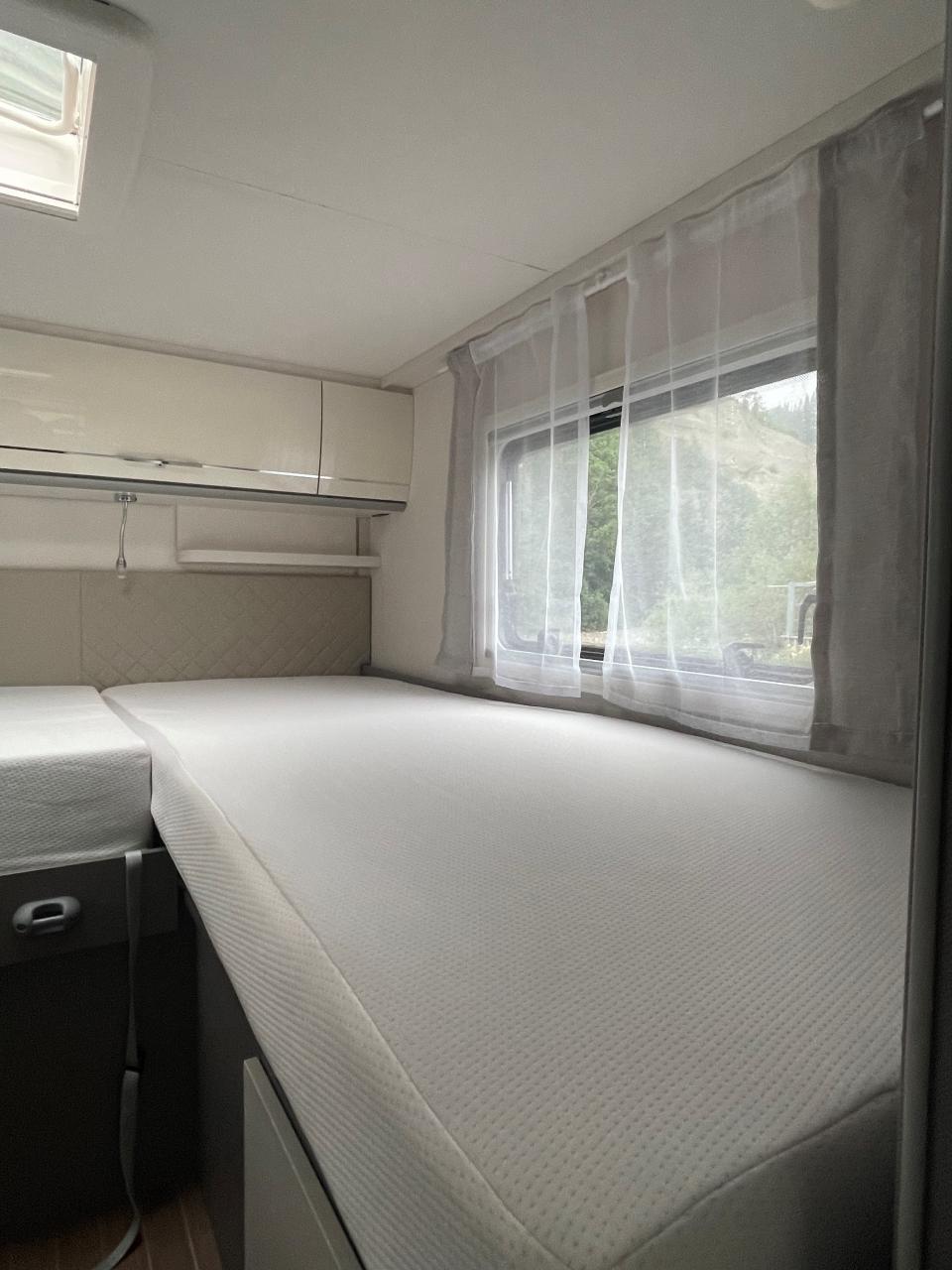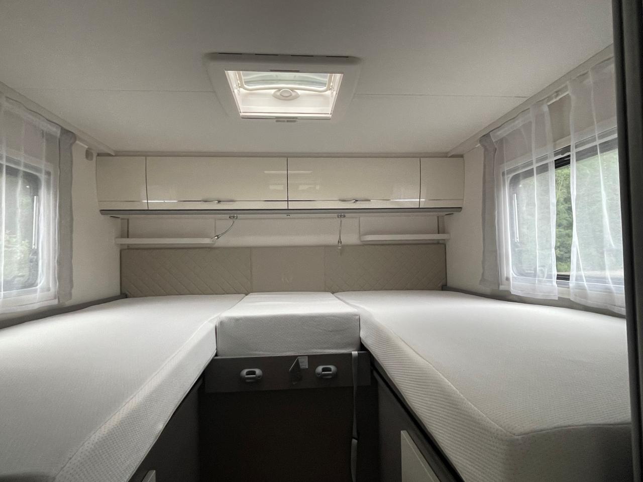 Flexibel und wendig unterwegs sein. Mit dem richtigen Reisemobil ist alles möglich: Von Familien-Urlaub bis City-Trip zu zweit. Design-Update und Komfort-Extras bei den Teilintegrierten von Etrusco: Noch bequemer, noch durchdachter und noch mehr Wohlfühlen. Für spannende Tage und entspannte Nächte. Mit dem T 7400 SBC gehen wir neue Wege in der Wohnraum und Sitzgruppen-Gestaltung. Zwei gegenüberliegende Sofas bilden gemeinsam mit den Fahrerhaussitzen und einem funktionalen Esstisch den grosszügigen Wohnraum. Hinter dem Raumbad und der separaten Dusche findet sich eine praktische Trennwand wieder, die Wohn- und Schlafbereich voneinander abtrennen lässt. Complete Selection: