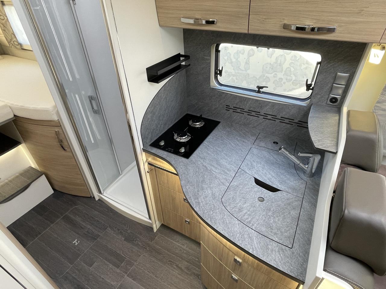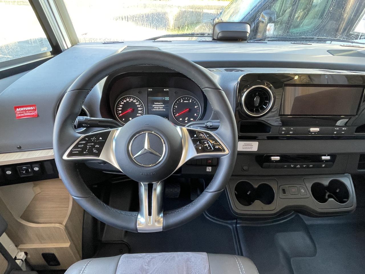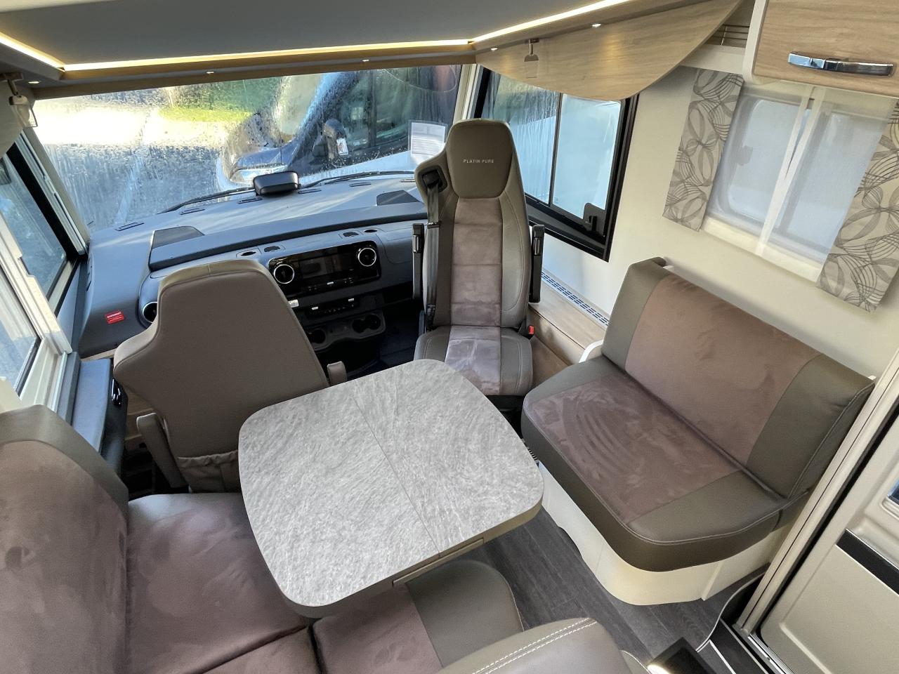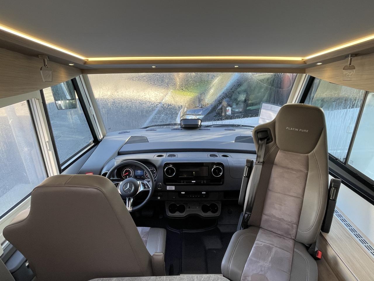 FRANKIA PLATIN Pure Der edle Integrierte FRANKIA in der Edition Pure ist ideal für anspruchsvolle Reisende, die die besonderen Annehmlichkeiten eines luxuriösen Wohnmobils auch auf einer kompakten Länge von unter 8 Metern genießen wollen. Ob starke Mercedes-Benz-Basis, einzigartiges Technikpaket oder Upperclass-Wohnkomfort – der FRANKIA PLATIN Pure setzt auf Unabhängigkeit. Ausstattung: - Platin Serienchassis: -Mercedes Motor mit 190 PS -Automatikgetriebe -93 l Dieseltank -halbautomatische Klimaanlage TEMPMATIK -Tempomat -Abstandsassistent Distronic -Aufmerksamkeitsassistent -Verkehrszeichenassistent -aktiver Spurhalteassistent -Standheizung -Lederlenkrad -MBUX Multimediasystem inkl. Navigation, DAB Radio und 10,25 Zoll Touchscreen - Platin Pure Ausstattung: -Alufelgen VA und Alu-Radkappen HA -Spurverbreiterungen auf Hinterachse -elektrische Verdunklungsplissee -ALDE Warmwasserheizung -Thermo Guard Plus -manuelle Markise 5,5 m, Gehäuse anthrazit -Frischwassertank mit Option 50 Liter Fahrbefüllung -Flachbildschirm SMART TV -Vorbereitung 2. TV-Platz im Schlafzimmer -Duo Control für Gasflaschen inkl. Eis-Ex -Wechselrichter -3x Solarpanel à 100 W mit Solarregler und Solarfernanzeige -LiFePO Batterie -1x Lade Booster -1x Zusatzlader -Rückfahrkamera mit Anbindung an das MBUX -Wifi Router inkl. Dachantenne (zusätzliche SIM-Karte notwendig) - Mercedes LED-Scheinwerfer - Vorbereitung für Anhängervorrichtung - Zusätzliche Außenklappe Garage links - LED Beleuchtungsprofil - GD Bettverlängerung - 1-Säulentischfuß fest - 4 serienmäßige Gurtsitzplätze - Ventilator für Kühlschrank - Gasaußensteckdose - Frischwassereinfüllstutzen - Außendusche - Steckdosenpaket 7400 GD Pure -3x zusätzliche 230 V Steckdose --1x hinter dem rechten Fahrerhaussitz --1x bei Küchensteckdosen --1x in Ablage/Stauraum oberhalb Kühlschrank -1x zusätzliche USB-Steckdose --1x hinter dem linken Fahrerhaussitz - Wärmetauscher für ALDE Heizung - Wohnwelt Platin Pure Visby -Holz: Visby/White -Polsterstoff Wohnraum: --Sitzfläche: Teil-Leder Hai und Mikrofaser Denverr --Rückenpolster: Teil-Leder Hai und Mikrofaser Denver -Gardine: Bisingen -Boden: Anthrazit -Kissen: Natura 20 -Arbeitsfläche: Duropal Beton (grau) -Tischplatte: Duropal Beton (grau) Fahrerhaussitze: --Fläche 1 / Innen: Mikrofaser Denver --Fläche 2 / Außen: Leder Hai - Transport, Import, Homologation - Ablieferung Reisemobil Irrtümer und Zwischenverkauf vorbehalten. Die angegebenen Gewichte sind Durchschnittswerte, welche von dem tatsächlichen Fahrzeug abweichen können. 26/9554/sbu