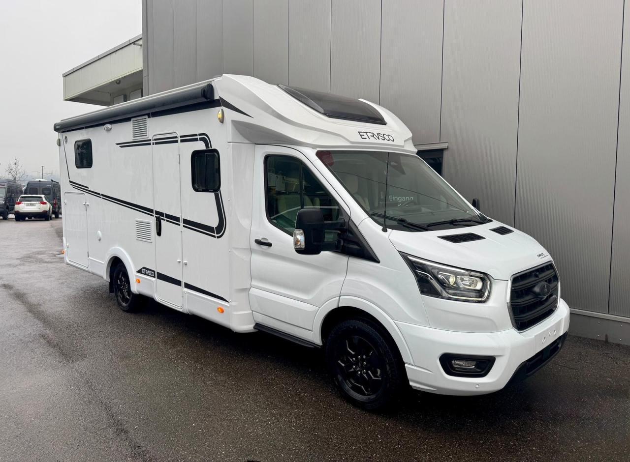 - Etrusco Teilintegriert Ford T 7.3 SCF - Complete Selection Bestehend aus: • Abwassertank isoliert • Chassis Paket • Design Applikation Heck • Design Paket type X • Fenster in T-Haube • FORD 16" Alufelgen, schwarz • Komfort Paket • Rahmenfenster • Vorbereitung Dachklimaanlage • Vorbereitung Solaranlage • Vorbereitungen für TV Kabel 12V und TV Halterung • Wohnwelt Emilia - Chassis Paket Bestehend aus: • Handschuhfach abschließbar • Klimaautomatik • Lederlenkrad • Scheinwerfer mit statischem Abbiegelicht • Stoßfänger vorn in Wagenfarbe - Design Paket type X Bestehend aus: • Dachschrankklappen in Hochglanz Magnolia • type X Abklebung innen und außen • Wohnwelt Emilia - Komfort Paket Bestehend aus: • Fahrerhaussitze inkl. Wohnraumbezügen • Holzlattenrost in der Dusche • Spiegel und Garderobenhaken • Steckdose im Küchenblock • Steckdose in der Garage - Technologiepaket 15 Bestehend aus: • Außenspiegel elektrisch einstellbar, anklappbar & beheizbar • Geschwindigkeitsregelanlage, adaptiv mit Stop & Go Funktion (für Automatikgetriebe) • Navigationssystem • Pre-Collision Assist, kamera- und radar-basiert • Verkehrsschild-Erkennungssystem, erweitert - 2.0l TDCi Ford Ecoblue mit 121 kW|165 PS - EURO 6e - Automatikgetriebe - Bi-Xenon Scheinwerfer mit LED-Tagfahrlicht - Faltverdunklung für Fahrerhaus - Bettenumbau Sitzgruppe (Einzelbett) - Heizung Combi 6 E (mit Elektroheizstab) inkl. digitales Bedienpanel - Gasregler mit Umschaltautomatik + Enteisungsvorrichtung - Fussbodenerwärmung elektrisch im begehbaren Bereich - Markise (manuell), 4,5 m, Gehäuse in schwarz - Wohnwelt Emilia - Transport, Import, Homologation - Ablieferung Reisemobil inkl. MFK Prüfung, voller Treibstofftank und ausführliche Übergabeinstruktionen