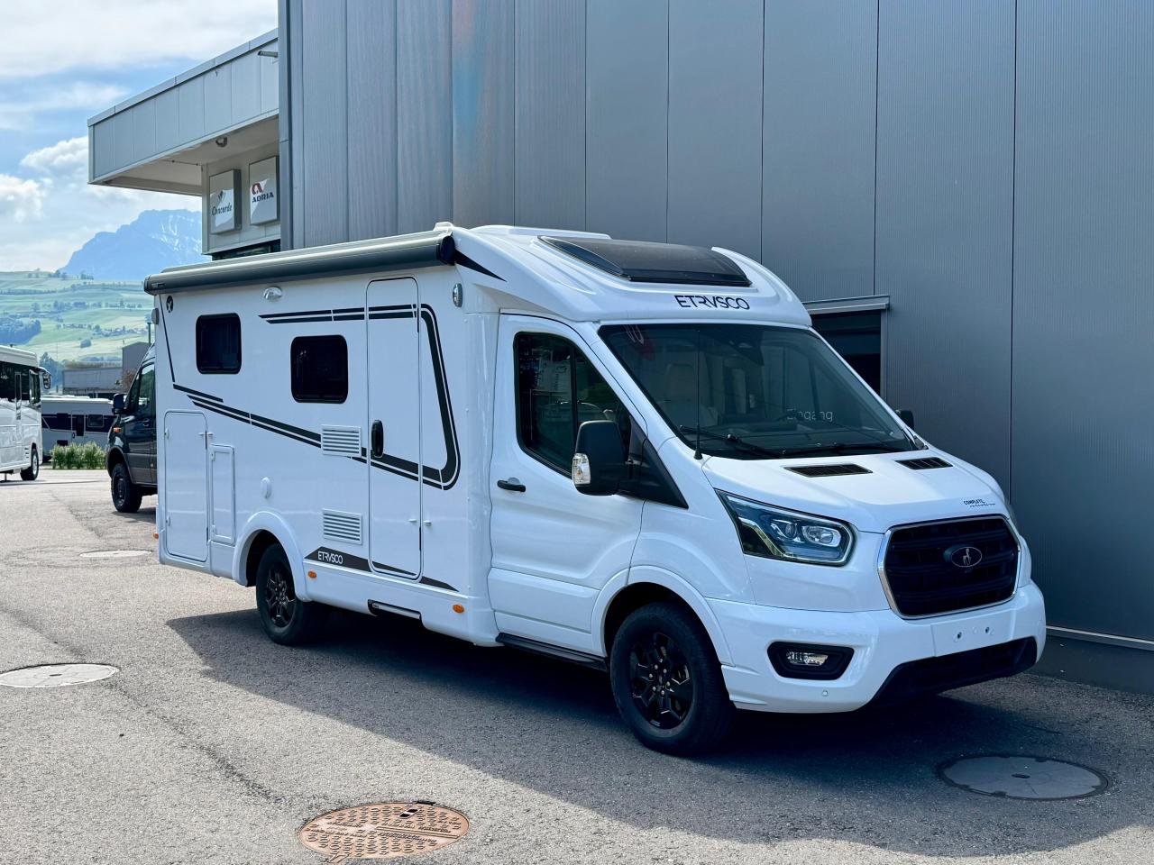 - Etrusco Van Ford V 6.6 SF - Complete Selection Bestehend aus: • Abwassertank isoliert • Chassis Paket • Design Paket type X • Fenster in T-Haube • FORD 16" Alufelgen, schwarz • Komfort Paket • Markise (manuell), 4 m, Gehäuse in anthrazit • Rahmenfenster • Vorbereitung Dachklimaanlage • Vorbereitung Solaranlage • Vorbereitungen für TV Kabel 12V und TV Halterung • Wohnwelt Emilia - Chassis Paket Bestehend aus: • Handschuhfach abschließbar • Klimaautomatik • Lederlenkrad • Scheinwerfer mit statischem Abbiegelicht • Stoßfänger vorn in Wagenfarbe - Design Paket type X Bestehend aus: • Dachschrankklappen in Hochglanz Magnolia • type X Abklebung innen und außen • Wohnwelt Emilia - Komfort Paket Bestehend aus: • Fahrerhaussitze inkl. Wohnraumbezügen • Holzlattenrost in der Dusche • Spiegel und Garderobenhaken • Steckdose im Küchenblock • Steckdose in der Garage - Technologiepaket 15 Bestehend aus: • Außenspiegel elektrisch einstellbar, anklappbar & beheizbar • Geschwindigkeitsregelanlage, adaptiv mit Stop & Go Funktion (für Automatikgetriebe) • Navigationssystem • Pre-Collision Assist, kamera- und radar-basiert • Verkehrsschild-Erkennungssystem, erweitert - 2.0l TDCi Ford Ecoblue mit 121 kW|165 PS - EURO 6e - Automatikgetriebe - Faltverdunklung für Fahrerhaus - Bi-Xenon Scheinwerfer mit LED-Tagfahrlicht - Heizung Combi 6 E inkl. digitales Bedienpanel - Gasregler mit Umschaltautomatik + Enteisungsvorrichtung - Wohnwelt Emilia - Zulassungsdokumente - Transport, Import, Homologation - Ablieferung Reisemobil inkl. MFK Prüfung, voller Treibstofftank und ausführliche Übergabeinstruktionen