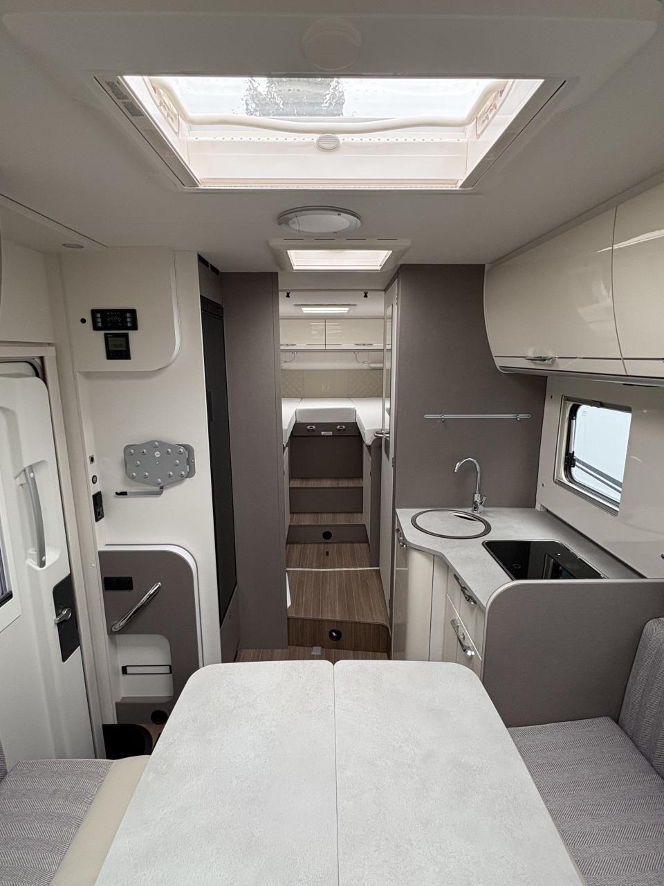 - Etrusco Teilintegriert Fiat T 7400 SBC - Complete Selection Bestehend aus: • Abwassertank isoliert • Design Applikation Heck • Design Paket type X • Fenster in T-Haube • Komfort Paket • Multimedia Paket Compact • Rahmenfenster • Vorbereitung Dachklimaanlage • Vorbereitung für Rückfahrkamera • Vorbereitung Solaranlage • Vorbereitungen für TV Kabel 12V und TV Halterung • Wohnwelt Emilia - Paket Design type X Bestehend aus: • Dachschrankklappen in Hochglanz Magnolia • type X Abklebung innen und außen • Wohnwelt Emilia - Paket Komfort Bestehend aus: • Fahrerhaussitze inkl. Wohnraumbezügen • Holzlattenrost in der Dusche • Spiegel und Garderobenhaken • Steckdose im Küchenblock • Steckdose in der Garage - Paket Multimedia Compact Bestehend aus: • Moniceiver Apple CarPlay | Android Link ohne Navi • Rückfahrkamera doppelt - Fiat Ducato 2,2l Multi-Jet-103 kW | 140 PS-Automatikgetriebe - Faltverdunklung für Fahrerhaus - Bettenumbau Sitzgruppe (Einzelbett) - Gasregler mit Umschaltautomatik + Enteisungsvorrichtung (DuoControl + EisEX) - Heizung Combi 6 E (mit Elektroheizstab) inkl. digitales Bedienpanel - Fussbodenerwärmung elektrisch im begehbaren Bereich - Markise (manuell), 4,5 m, Gehäuse in schwarz - Wohnwelt Emilia - Zulassungsdokumente - Transport, Import, Homologation - Ablieferung Reisemobil inkl. MFK Prüfung, voller Treibstofftank und ausführliche Übergabeinstruktionen - Etrusco Teilintegriert Fiat T 7400 SBC - Complete Selection Bestehend aus: • Abwassertank isoliert • Design Applikation Heck • Design Paket type X • Fenster in T-Haube • Komfort Paket • Multimedia Paket Compact • Rahmenfenster • Vorbereitung Dachklimaanlage • Vorbereitung für Rückfahrkamera • Vorbereitung Solaranlage • Vorbereitungen für TV Kabel 12V und TV Halterung • Wohnwelt Emilia - Paket Design type X Bestehend aus: • Dachschrankklappen in Hochglanz Magnolia • type X Abklebung innen und außen • Wohnwelt Emilia - Paket Komfort Bestehend aus: • Fahrerhaussitze inkl. Wohnraumbezügen • Holzlattenrost in der Dusche • Spiegel und Garderobenhaken • Steckdose im Küchenblock • Steckdose in der Garage - Paket Multimedia Compact Bestehend aus: • Moniceiver Apple CarPlay | Android Link ohne Navi • Rückfahrkamera doppelt - Fiat Ducato 2,2l Multi-Jet-103 kW | 140 PS-Automatikgetriebe - Faltverdunklung für Fahrerhaus - Bettenumbau Sitzgruppe (Einzelbett) - Gasregler mit Umschaltautomatik + Enteisungsvorrichtung (DuoControl + EisEX) - Heizung Combi 6 E (mit Elektroheizstab) inkl. digitales Bedienpanel - Fussbodenerwärmung elektrisch im begehbaren Bereich - Markise (manuell), 4,5 m, Gehäuse in schwarz - Wohnwelt Emilia - Zulassungsdokumente - Transport, Import, Homologation - Ablieferung Reisemobil inkl. MFK Prüfung, voller Treibstofftank und ausführliche Übergabeinstruktionen