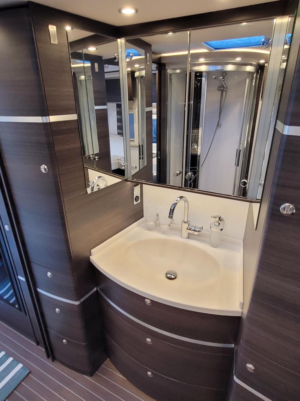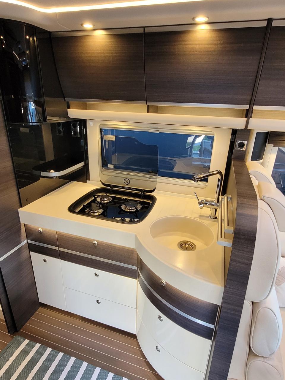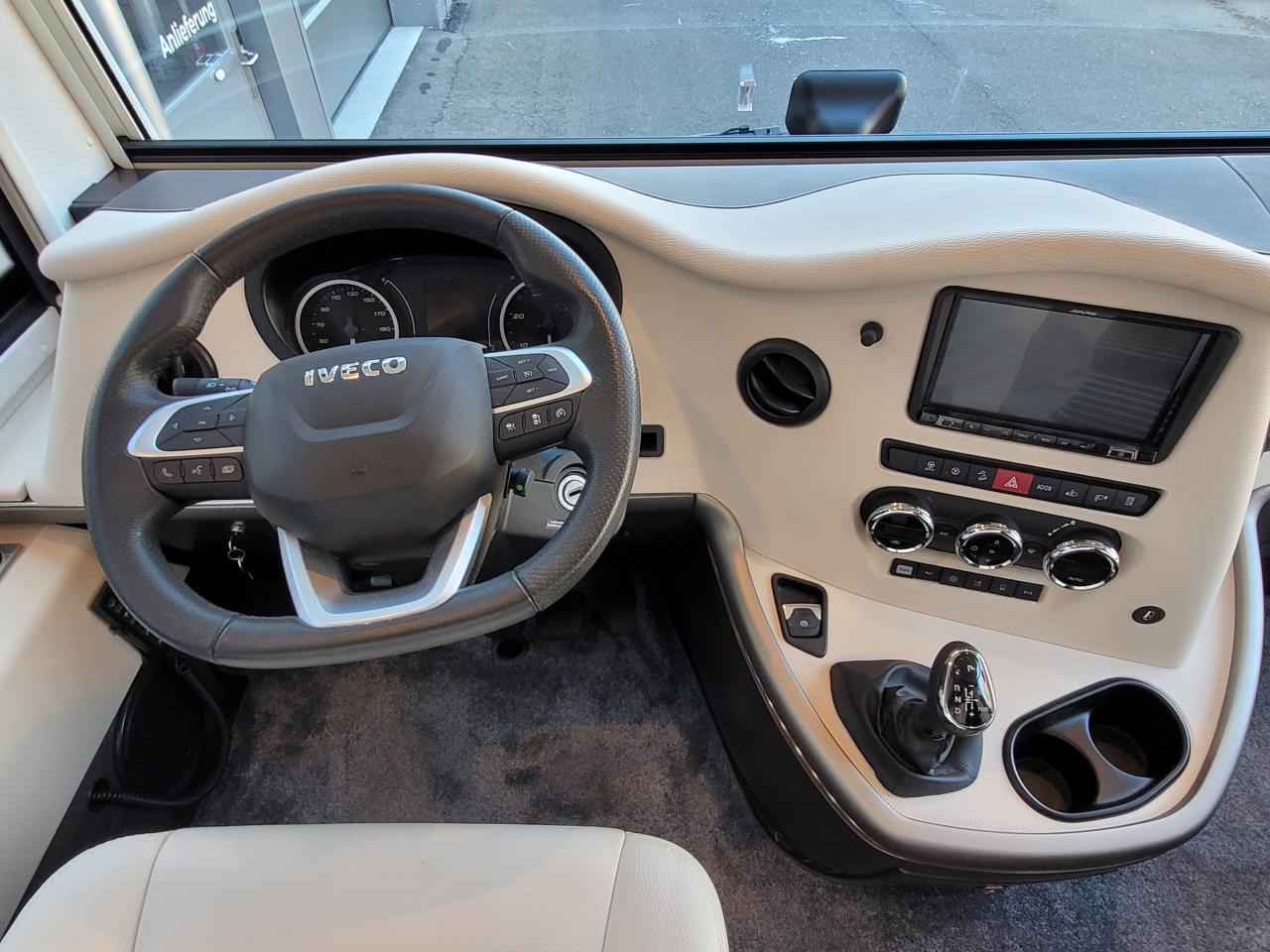 * Fahrzeugverkauf im Kundenauftrag * - Concorde Carver 850 L - Jubiläumsmodell - Ausstattung: - Jubiläumspaket, Carver 850 L - Chassispaket II 70C mit Auflastung auf 7.490 kg - Chassisvariante Iveco Daily 70C - Auflastung Vorderachse auf 2900 kg - Motorvariante Iveco Daily C21 - Abgasnorm: Euro VI d - Hubraum: 3,0 l - Leistung:154 kW (210 PS) - Drehmoment : 470 Nm - ZF-Wandler-Automatik-Getriebe - Anhängerkupplung mit Anhängelast max. 3.010 kg - Komfort- und Sicherheitspaket - Differenzialsperre für Hinterachse - Concorde Fahrwerks Paket VA + HA - Hydraulische Hubstützenanlage mit automatischer Nivellierung - Kraftstofftank ca. 120 l - Bi-LED Hauptscheinwerfer im Frontbereich, - im Stossfänger integriertes Nebellicht - statisches Kurvenlicht und Tagesfahrlicht mit LED - Motorwärmetauscher, der das Kühlwasser des Motors zur Wohnraumbeheizung nutzt - Reserverad mit Stahlfelge unter der - Heckabsenkung der Heckgarage - Leichtmetallfelgen 16" Schwarz / Silber matt, - Vorderachse mit Spurweitenvergösserung - Hinterachse mit Aluminium Radzierblenden - Multifunktionslenkrad abnehmbar - Doppelton-Druckluftfanfare - Centurion Style Paket - Zentralverriegelung für Stauraumklappen mit elektr. Sensoröffnung - Zusätzliche Verzurrschiene in Garage auf Höhe des Wohnraumbodens - Verzurrsystem mit Airlineschienen Heckgarage - Elektrische Ablassventile für Grau- und Schwarzwassertank, inkl. Kamera - Seitenwandmarkise 6,0 m, elektrisch - LED-Seitenwandbeleuchtung unterhalb der Markise - LED-Beleuchtung für Stauräume im Doppelboden - Bugspiegel rechts und links für Reisebus-Außenspiegel - Reisebus-Außenspiegel im Centurion-Style, weiss lackiert - Isolierverglaste Fahrerhaus-Seitenscheiben mit elektrischer Betätigung - Elektrisches Sonnenrollo im Fahrerhaus für Frontbereich - Armaturenbrett und -Abdeckung mit Kunstleder bezogen Bicolor "Vanille / Terra" - Frontsichtschutzrollo "Privacy" variabler Sichtschutz von unten nach oben - Hubbett mit elektrischer Betätigung und Unterfederung - CL-Lounge (mit 4 Personen-Zulassung) - Tisch ausziehbar - Frisch- und Abwassertank je ca. 320 l (statt 230 l) - Midi-Heki anstatt Mini-Heki im Schlafraum - Mineralstoff-Küchenarbeitsplatte - nahtlos eingeformtes Spülbecken - Edelstahl-Kochmulde 3-flammig mit Automatikzündung - Glasabdeckung und Glasboden - Farbe: Marmor weiss - Hochwertige Design-Einhebelmischbatterie in Chrom für Küche und Bad (Küche mit Ausziehbrause) - Kompressor Kühlschrank 177 L - Mikrowelle über Kühlschrank - Dachventilator Be- und Entlüftungsfunktion - Acryl-Glasscheibe beleuchtet vor Küchenfenster - Elektro-Leistungspaket "Ultra-Power" - 1x Lithium-Batterie 400 Ah - Kombi-Ladegerät Ultra 150 A - Sinus-Wechselrichter von 12 V auf 230 V, 6000 W Spitzen- und 3000 W Dauerleistung mit Netzmangelausgleich - Ladestrom-Paket für Aufbaubatterien - Doppel-Rückfahrkamera mit Shutter - Solaranlage mit 3 Panels à 210 Wp (Gesamt 630 Wp) - TV-Anlage mit Full HD LED Smart TV 24" im Eingangsbereich und 24" Full HD LED Smart TV im Heckschlafraum mit integriertem TV-Tuner - LTE WLAN Router zur Verstärkung externer WLAN Signale und für Internet TV-streaming - Navigationssystem mit LKW-Software - Touchscreen-Bildschirm 9“ - integriertes Radio mit DAB+ - Freisprecheinrichtung für Telefon - Soundsystem - Akustik-Paket Heckschlafraum - SOG-Comfort-Toilettenentlüftung - mit Aktivkolhenfilter für Festtank - Absaugung am Toilettenbecken - Gastank 120 l - Gas-Vorfilter - Gasfernbefüllung - Crashsensor - Füllstandanzeigen im Display - Dachklima für Wohnraum 2400 W mit Heizelement 1700 W - Heizungskreislauf Schlafraum und Garage thermostatisch abregelbar - 2-Zonen-Fussbodenheizung, getrennt abregelbar (Wohnbereich, Bad) - Alde-Flow 6 l Warmwasser-Zusatzboiler - Spiegelschranktüren mit Innenspiegel - Steckdose 230 V zusätzlich im Fahrerhaus auf Beifahrerseite - Steckdose 230 V zusätzlich auf Holzverkleidung bei der Küche - Doppel-USB-Steckdose zusätzlich am Kopfende bei Heckbett - Leder-Polsterung "Jubi 40 Vanille" - zusätzliche Einbauten: - IDEA Auszug in der Stauraumklappe vorne rechts - Thule Seitenwandvorbereitung an der Markise - Auszug (Breite 40cm) in der Heckgarage für RAKO-Boxen * Irrtümer und Zwischenverkauf vorbehalten. Die angegebenen Gewichte sind Durchschnittswerte, welche von dem tatsächlichen Fahrzeug abweichen können. *