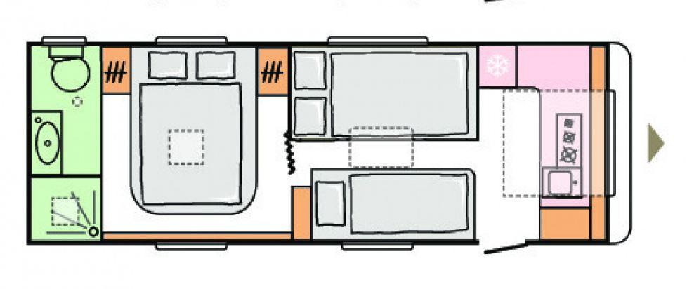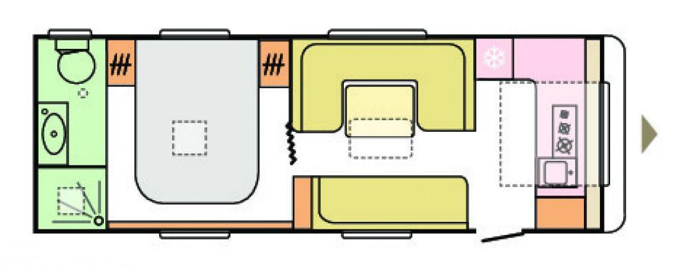 Heckbad, Queensbett, U-Sitzgruppe, ALKO Chassis, Frischwassertank 50 l, GFK Dach, Schwerlastkurbelstützen, Antischlingerkupplung AKS, ALDE Heizung, grosser Kühlschrank 167 L, Backofen, 3-Flammherd Rechaud, Dunstabzug, TV Halterung