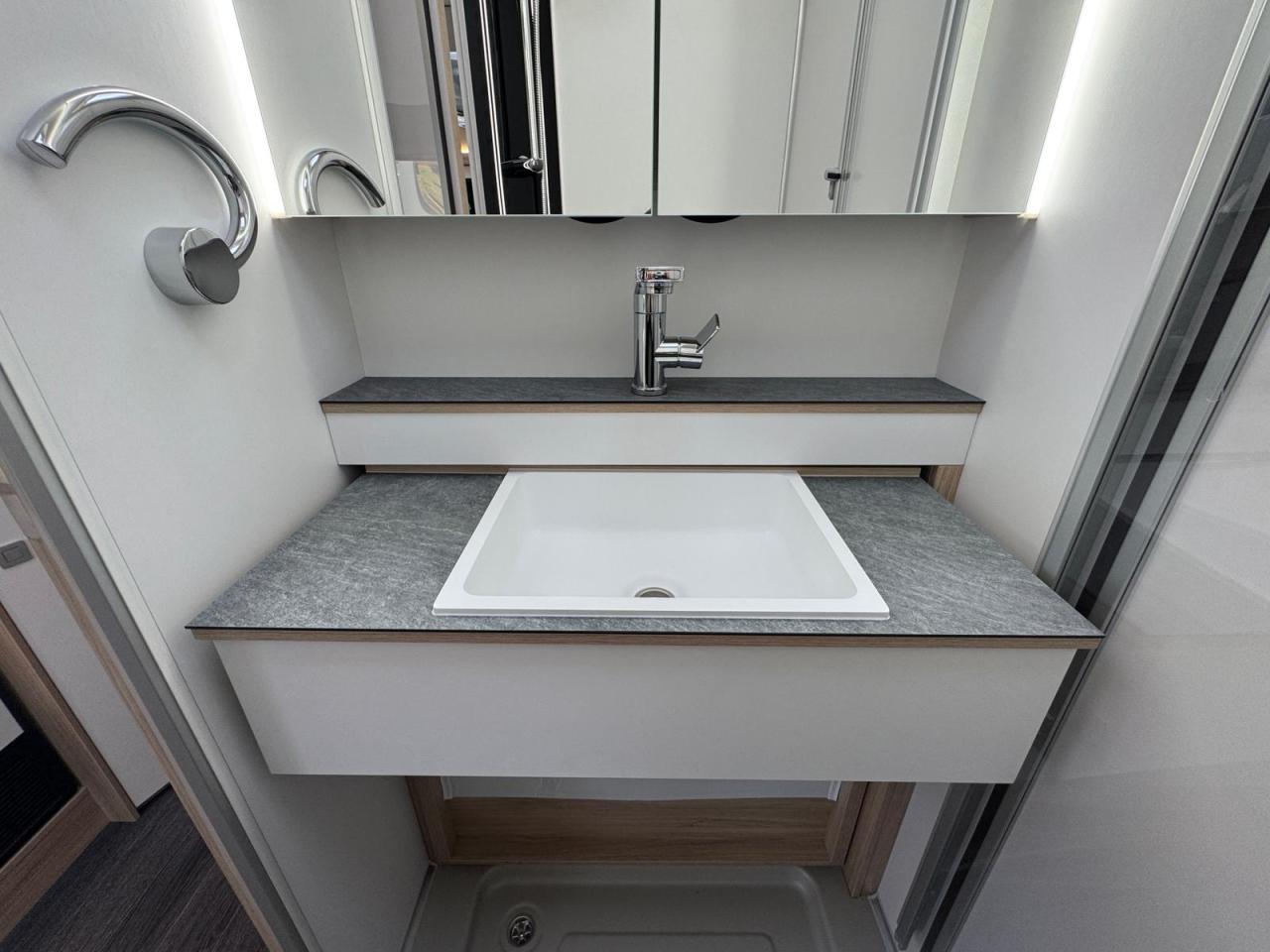 ausfahrbares Waschbecken im Waschraum