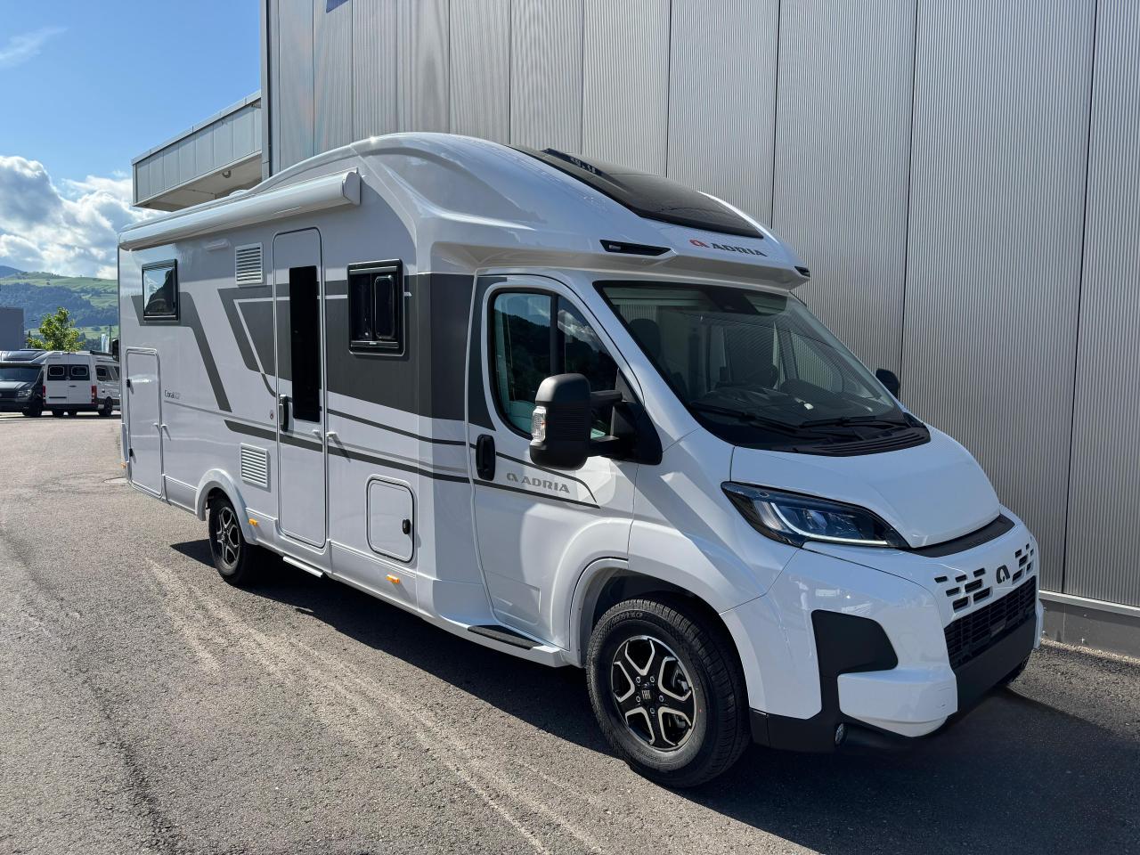 Der CORAL im Design der neuen Generation. Ein teilintegriertes Reisemobil mit dem SunRoof im exklusiven Adria Design für ein Wohnen im Atrium-Stil. Konzipiert für komfortables Reisen, mit elegantem Automobildesign und modernen, offenen Wohnräumen. Ausstattung;