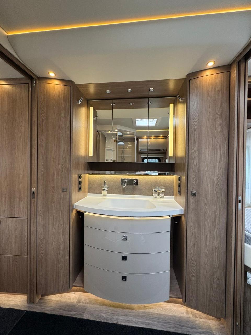 32" LED-Flachbildschirm im Oberschrank rechts (Wohnraum), elektrisch absenkbar